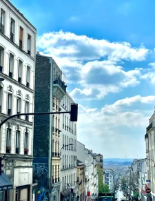 On enchaine par un incontournable du quartier : le Parc de Belleville et son fameux belvédère. C'est sincèrement une des plus belles vues de Paris, à couper le souffle. On peut y rester des heures à contempler les toits parisiens qui s'entremêlent avec le bleu océan du ciel.
